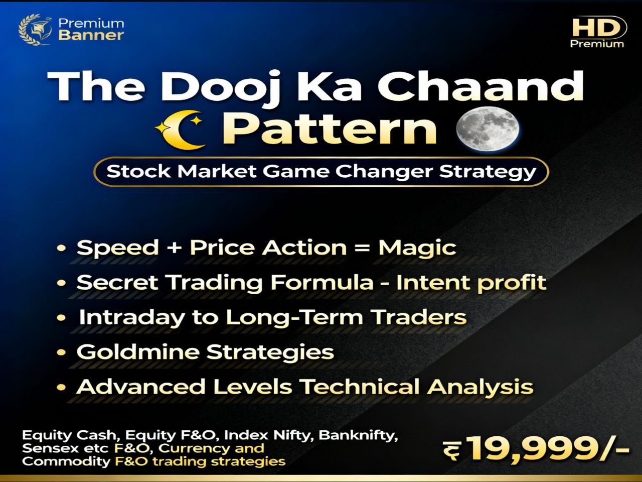 🌙 “Dooj Ka Chand Pattern” – The Secret Formula of Smart Trading Have you ever wondered why only a few traders consistently make profits while most keep guessing the market? “Dooj Ka Chand 🌙 Pattern” is not an ordinary strategy — it’s a scientific and psychological trading formula that helps you decode market trends, institutional moves, and hidden signals with precision. 💡 Why It Works: ✅ Analyzes Hidden Market Waves & Smart Money Movements ✅ Accurately identifies Trend Reversals, Breakouts & Entry–Exit Points ✅ Creates Low-Risk, High-Reward Trading Opportunities ✅ Tracks Institutional Price Action for Perfect Market Timing 🎯 Who Should Learn: Beginners who face repeated losses Intraday & Swing Traders seeking consistent profits Investors who want to master market timing Professional Traders aiming for 10X accuracy 🚀 This is not just a pattern — it’s a powerful trading system that turns you from reactive to strategic. 🔥 Learn Now and transform your trading into a Superpower with the “Dooj Ka Chand 🌙 Pattern”! (The Trading Empire & The Derivative Empire B&W Book Free Worth 5448 )